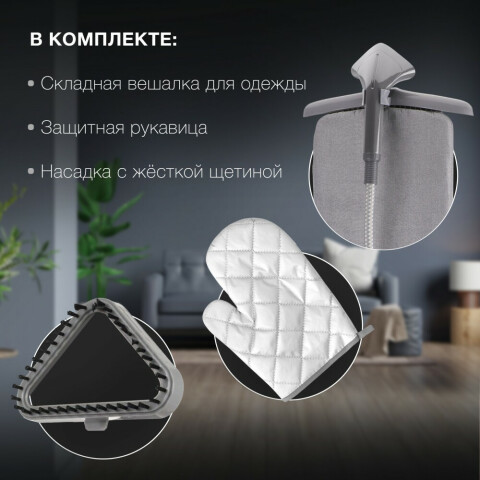 напольный отпариватель, мощность: 2000 Вт, максимальная подача пара: 50 г/мин, время работы: 45 мин, объём бака: 1.7 л, телескопическая стойка