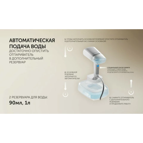 ручной отпариватель, мощность: 2200 Вт, максимальная подача пара: 40 г/мин, объём бака: 0.09 л
