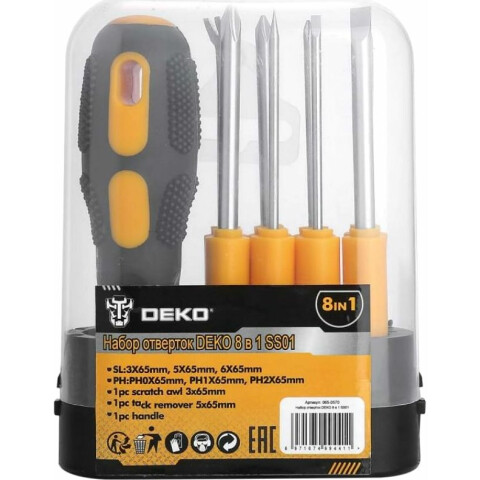 отвёртка с битами, кол-во предметов: 9 шт, Phillips (PH), Slotted (SL)
