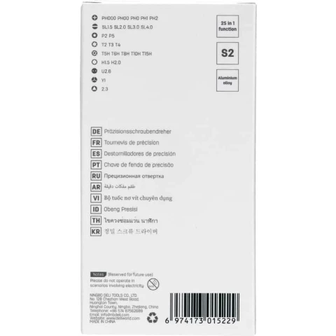 отвёртка с битами, кол-во предметов: 25 шт, Phillips (PH), Slotted (SL), Torx (T, Tx), шестигранный (HEX), Pentalobe (PL), для точных работ, магнитный наконечник, кейс (сумка)