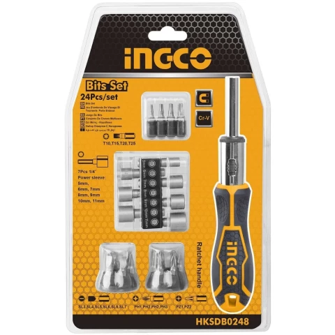 отвёртка с битами, кол-во предметов: 24 шт, Phillips (PH), Pozidriv (PZ), Slotted (SL), Torx (T, Tx), магнитный наконечник