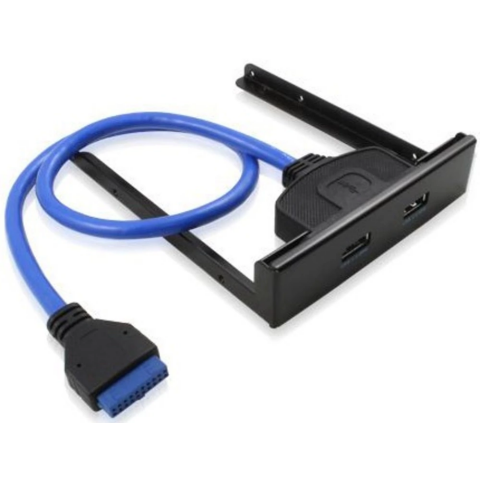 фронтальная панель для размещения портов на передней панели системного блока, добавляет порты 2хUSB 3.0, подключается к материнской плате через 1 порт 20-pin, занимает один слот 3.5" в корпусе