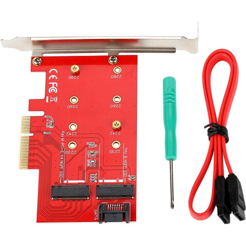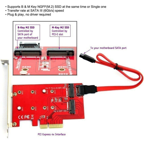 переходник M.2 - PCI-E 3.0 x4, поддержка двух SSD 2230/2242/2260/2280 ключ M и ключ B,интерфейс подключения к ПК: SATA и PCI-E