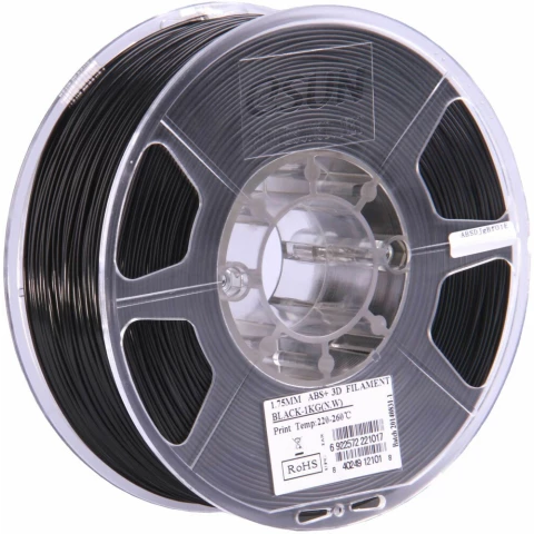 материал пластика ABS+, диаметр пластика 1.75 мм, вес пластика 1 кг, цвет сигнальный чёрный