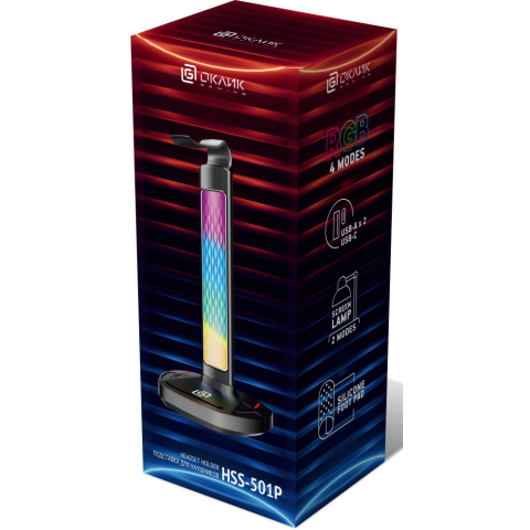 подставка для наушников, RGB-подсветка (4 эффекта), функция зарядки, 2x USB, USB-C для зарядки устройств