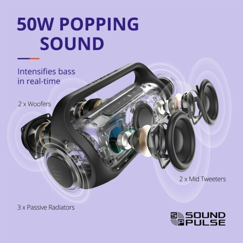 портативная акустика стерео, мощность 50 Вт, корпус из пластика, Bluetooth, питание от батарей, поддержка карт памяти