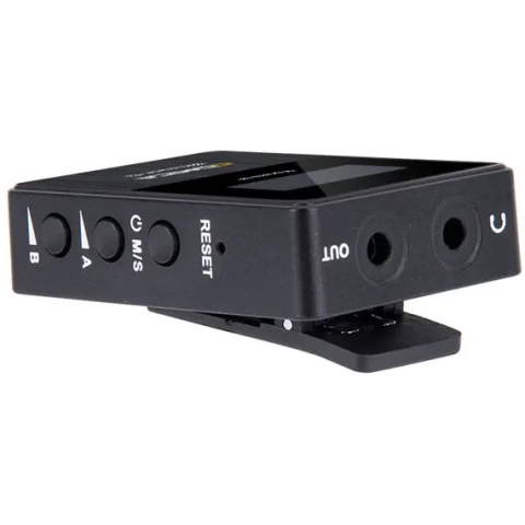 работа в диапазоне 2.4 Ггц; режимы стерео / моно; мониторинг записи в реальном времени; качество записи 16 бит 48 кГц; низкий уровень задержки до 20 мс; работа на расстоянии до 100 метров; до 5 ч работы от аккумулятора