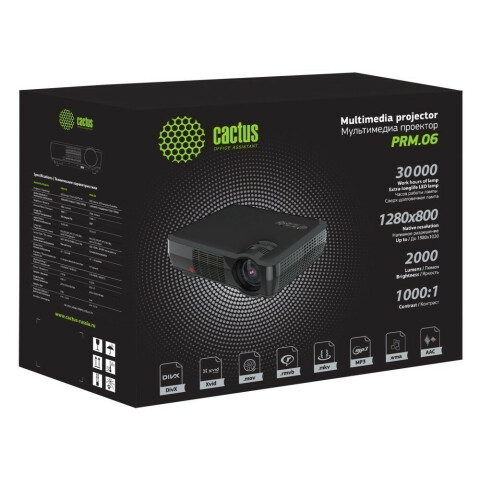 Бренд: Cactusстационарный, LCD, 1280x800, яркость: 2000 люмен, контрастность 1000:1, 2xHDMI
