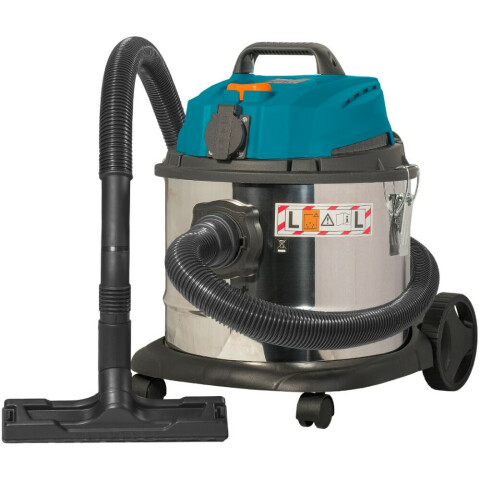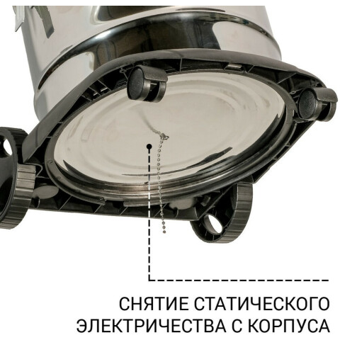 влажная, сухая уборка, пылесборник 15 л, мощность 1200 Вт, диаметр шланга 35 мм, длина шланга 2 м, длина кабеля питания 6 м, встроенная розетка, работа на выдув