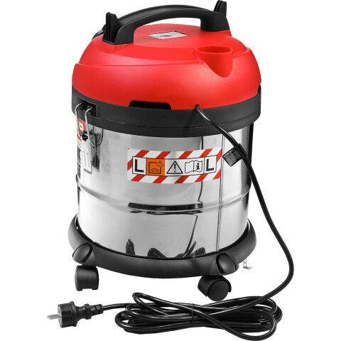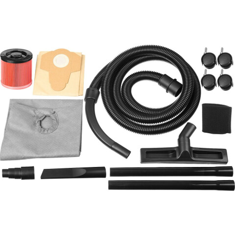 влажная, сухая уборка, пылесборник 20 л, мощность 1400 Вт, длина шланга 3 м, длина кабеля питания 4 м, встроенная розетка, работа на выдув