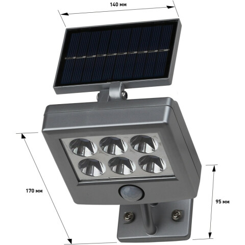 прожектор настенный, источник света: светодиоды, мощность 15 Вт, холодный белый цвет, цветовая температура 6500 K, световой поток 150 Лм, датчик движения, IP44