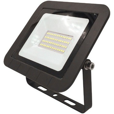 прожектор на дуге крепления, источник света: светодиоды, мощность 30 Вт, холодный белый цвет, цветовая температура 6500 K, световой поток 2800 Лм, до 25000 ч работы, IP65
