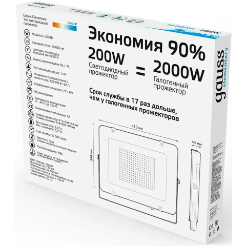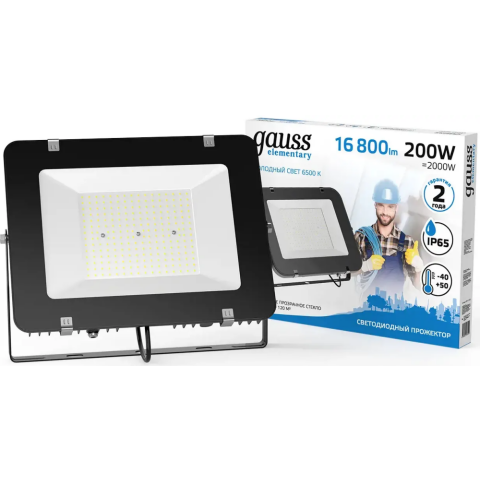 прожектор на дуге крепления, источник света: светодиоды, мощность 200 Вт, холодный белый цвет, цветовая температура 6500 K, световой поток 16800 Лм, до 35000 ч работы, IP65