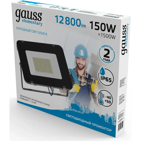 прожектор на дуге крепления, источник света: светодиоды, мощность 150 Вт, холодный белый цвет, цветовая температура 6500 K, световой поток 12800 Лм, IP65