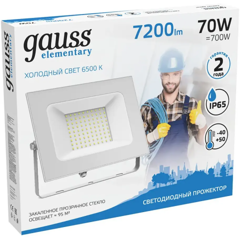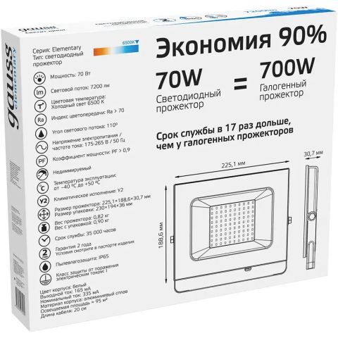 | прожектор на дуге крепления, источник света: светодиоды, мощность 70 Вт, холодный белый цвет, цветовая температура 6500 K, световой поток 7200 Лм, до 35000 ч работы, IP65 | 389 смн. |