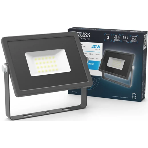 прожектор на дуге крепления, источник света: светодиоды, мощность 20 Вт, холодный белый цвет, цветовая температура 6500 K, световой поток 1700 Лм, до 35000 ч работы, IP65