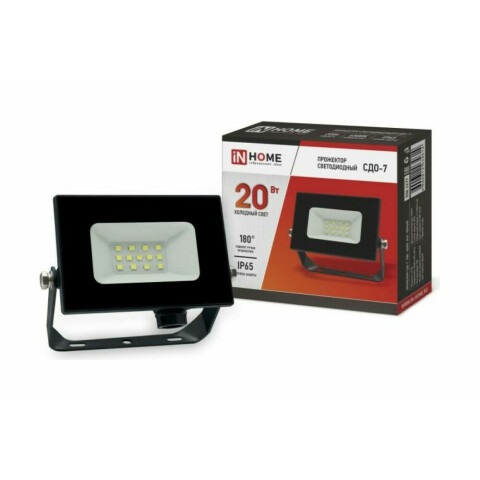 прожектор на дуге крепления, источник света: светодиоды, мощность 20 Вт, холодный белый цвет, цветовая температура 6500 K, световой поток 1800 Лм, IP65