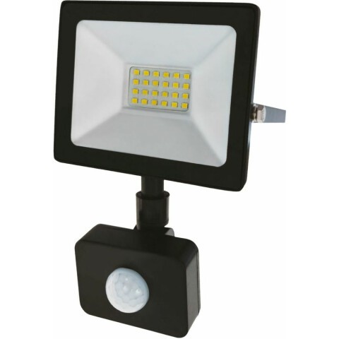 прожектор на дуге крепления, источник света: светодиоды, мощность 20 Вт, холодный белый цвет, цветовая температура 6500 K, световой поток 1600 Лм, до 30000 ч работы, датчик движения, IP65