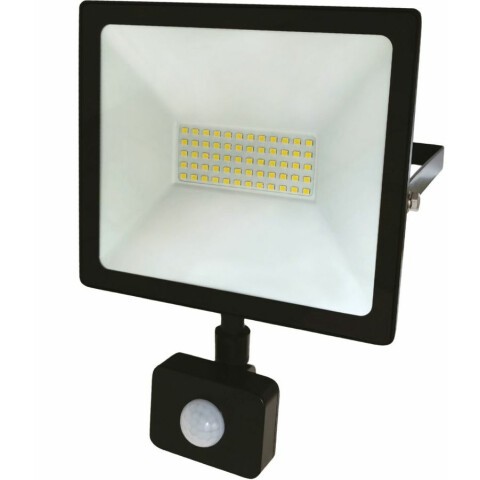 прожектор на дуге крепления, источник света: светодиоды, мощность 50 Вт, холодный белый цвет, цветовая температура 6500 K, световой поток 4000 Лм, до 30000 ч работы, датчик движения, IP65