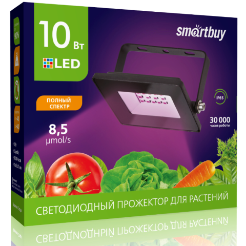 Бренд: SmartBuyпрожектор на дуге крепления, источник света: светодиоды, мощность 10 Вт, фиолетовый цвет, цветовая температура 1300 K, до 30000 ч работы, IP65