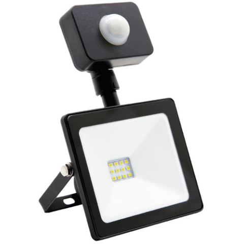 Бренд: SmartBuyпрожектор на дуге крепления, источник света: светодиоды, мощность 10 Вт, холодный белый цвет, цветовая температура 6500 K, световой поток 800 Лм, до 30000 ч работы, датчик движения, IP65