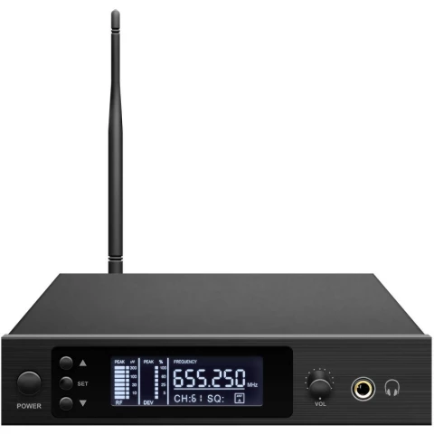 радиосистема для мониторинга, стационарный передатчик 710-726 MГц, поясной приемник (выход TRS 3.5 мм), наушники для мониторинга, LCD дисплей, интерфейсы: 2x XLR/TRS, TRS 3.5мм, TRS 6.35мм