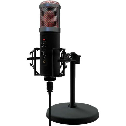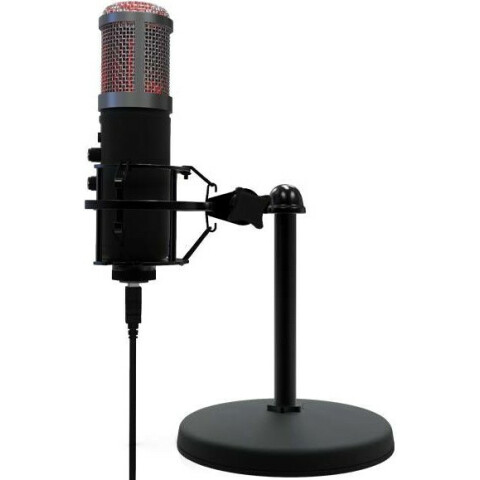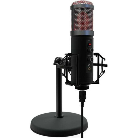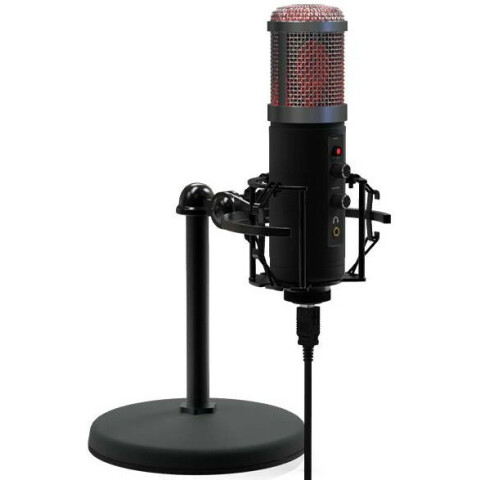 проводной настольный USB микрофон c RGB-подсветкой, конденсаторный, направленность: кардиоида, 30-18000Гц, 32 Ом, чувствительность -36±2 дБ, порт 3.5мм для наушников, кабель 1.8м