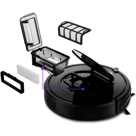 робот-пылесос, сухая уборка, время работы от аккумулятора: 60 мин, пульт ДУ, установка на зарядное устройство: автоматическая, фильтр тонкой очистки, мощность всасывания: 25 Вт