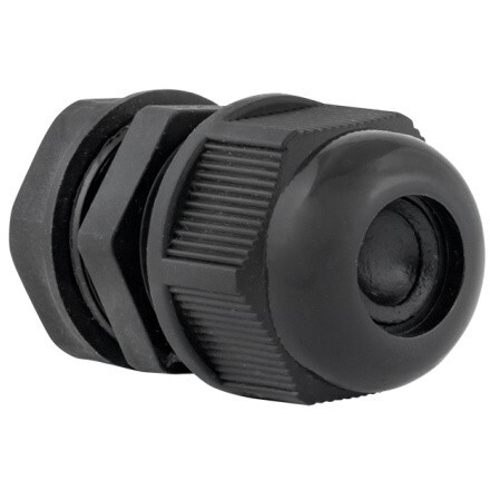 сальник, d отверстия 20 мм, d проводника 10-13 мм, из стопорной гайки, корпуса, зубчатой муфты, гайки-колпачка, сальника и прокладки (выполненных из неопрена), IP68