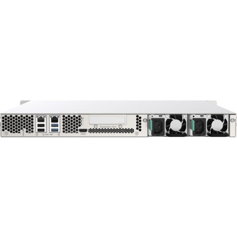 сетевой RAID-накопитель, 4 отсека 3,5"/2,5", 2 порта 2,5 GbE BASE-T, HDMI-порт, стоечное исполнение, 2 блока питания. Intel Celeron J4125 2.0 ГГц, 4 Гб DDR4