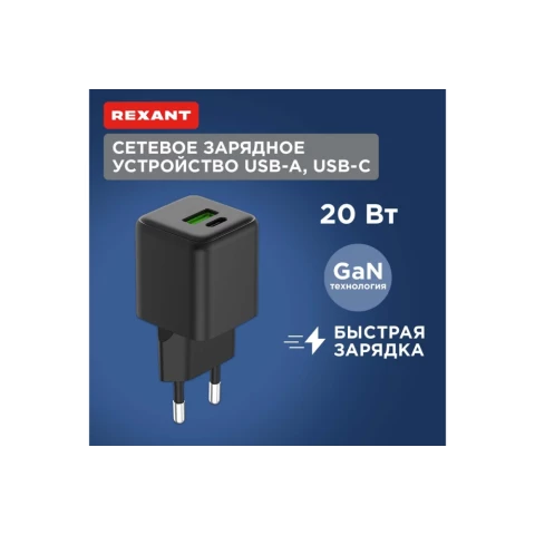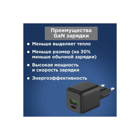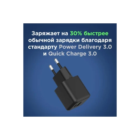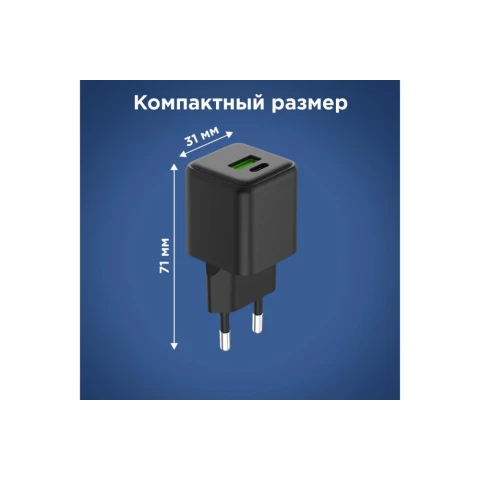 сетевое зарядное устройство, мощность 20 Вт, 1x USB, 1x USB Type-C, быстрая зарядка