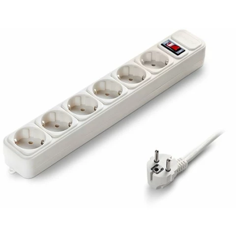 сетевой фильтр, 6 розеток, макс. нагрузка 2200 Вт, макс. ток 10 А, заземление, шторки на розетке, длина кабеля: 3 м, белый