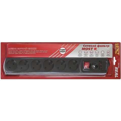 | сетевой фильтр, 6 розеток, макс. нагрузка 1300 Вт, выключатель на корпусе, длина кабеля: 2 м, чёрный | 268 смн. |