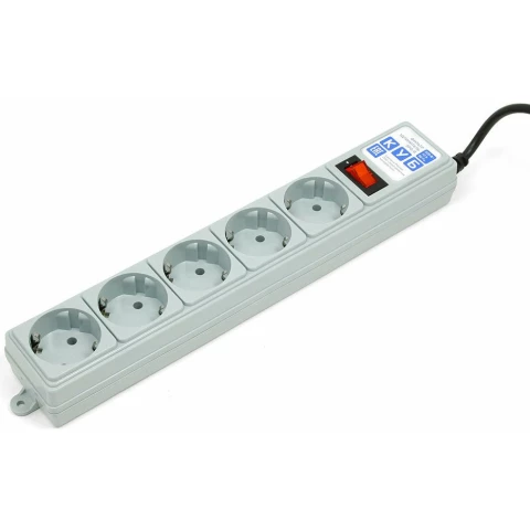 сетевой фильтр, 5 розеток, макс. нагрузка 2200 Вт, макс. ток 10 А, заземление, выключатель на корпусе, длина кабеля: 5 м, серый