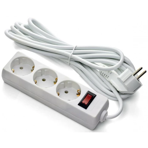 | удлинитель, 3 розетки, макс. нагрузка 2200 Вт, макс. ток 10 А, выключатель на корпусе, заземление, длина кабеля: 5 м, белый | 155 смн. |