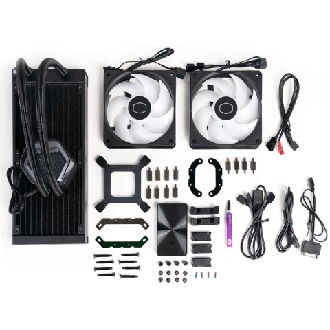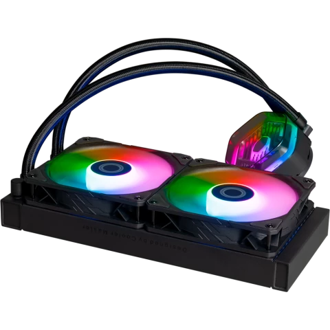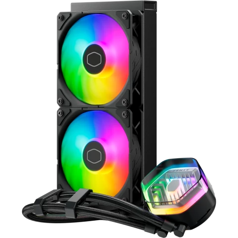 Бренд: Cooler Masterдля процессора, СЖО, Socket 115x/1200, 1700, AM4, AM5, 2x120 мм, 690-2500 об/мин, разноцветная подсветка