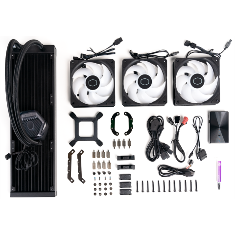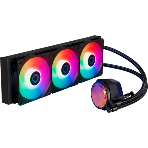 Бренд: Cooler Masterдля процессора, СЖО, Socket 115x/1200, 1700, AM4, AM5, 3x120 мм, 690-2500 об/мин, разноцветная подсветка