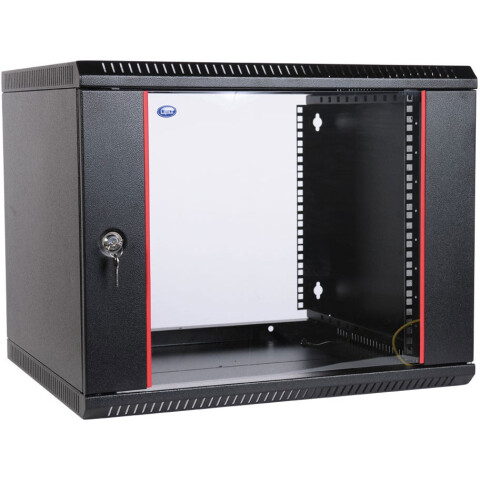 шкаф настенный, стандарт 19", высота 6U, 600 мм x 520 мм, стеклянная передняя дверь, нагрузка до 75 кг, замок