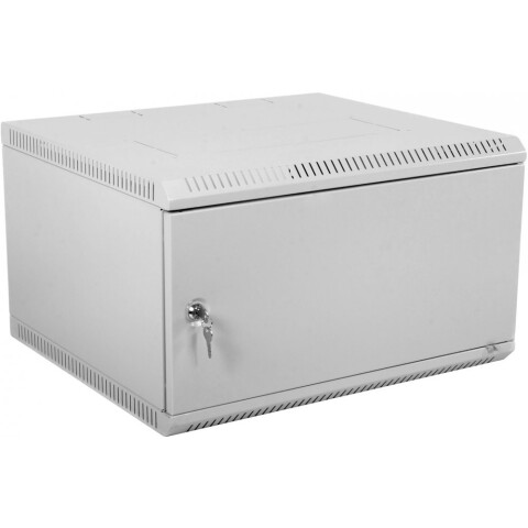 шкаф настенный, стандарт 19", высота 6U, 600 мм x 520 мм, металлическая передняя дверь, нагрузка до 75 кг, замок