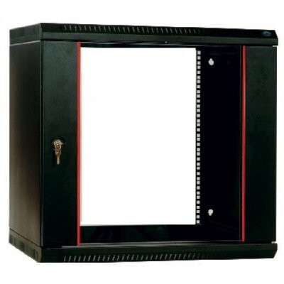 шкаф настенный, стандарт 19", высота 9U, 600 мм x 650 мм, стеклянная передняя дверь, нагрузка до 65 кг, замок