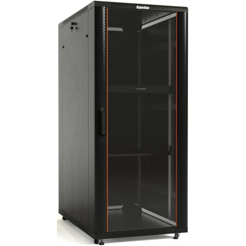 шкаф напольный, стандарт 19", высота 27U, 600 мм x 1000 мм, стеклянная передняя дверь, нагрузка до 800 кг, замок, IP20