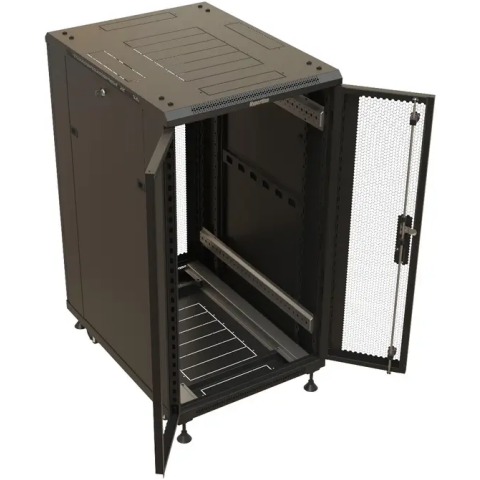 шкаф напольный, стандарт 19", высота 18U, 600 мм x 600 мм, металлическая передняя дверь, нагрузка до 1000 кг, замок, IP20