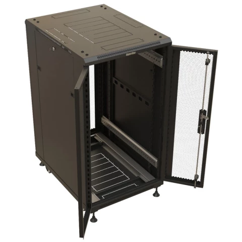 шкаф напольный, стандарт 19", высота 18U, 600 мм x 800 мм, металлическая передняя дверь, нагрузка до 1000 кг, замок, IP20