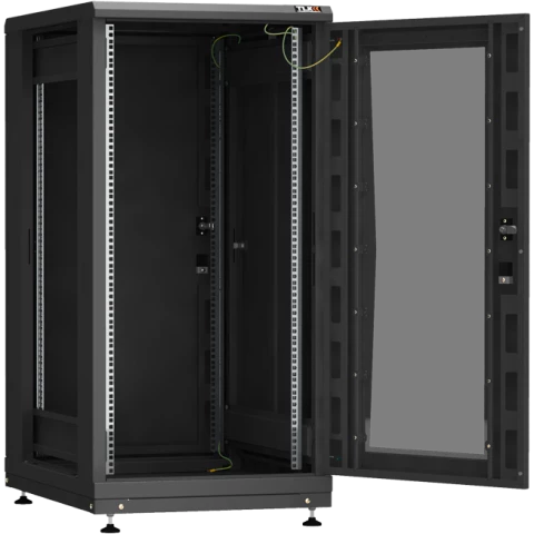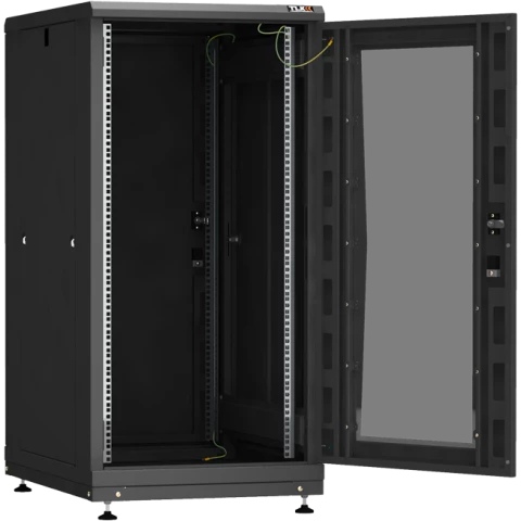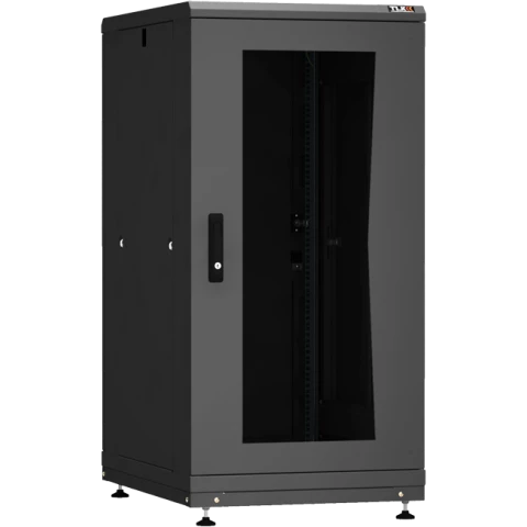 шкаф напольный, стандарт 19", высота 24U, 600 мм x 800 мм, стеклянная передняя дверь, нагрузка до 800 кг, замок, IP20