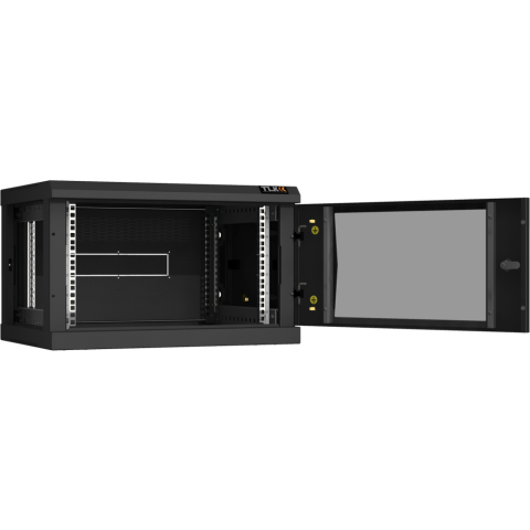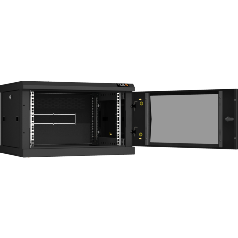 шкаф настенный, стандарт 19", высота 6U, 600 мм x 450 мм, стеклянная передняя дверь, нагрузка до 60 кг, замок, IP20