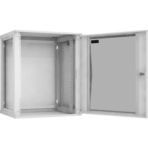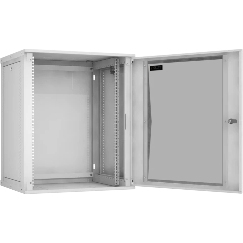 шкаф настенный, стандарт 19", высота 15U, 600 мм x 450 мм, стеклянная передняя дверь, нагрузка до 40 кг, замок, IP20
