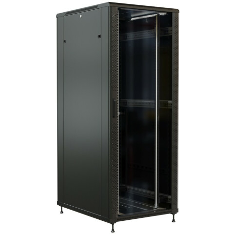 шкаф напольный, стандарт 19", высота 32U, 800 мм x 1000 мм, стеклянная передняя дверь, нагрузка до 800 кг, замок, IP20