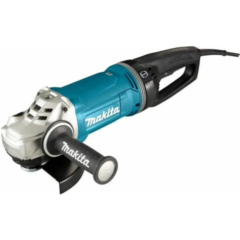 угловая шлифмашина, мощность 2400 Вт, частота вращения диска 8500 об/мин, диаметр диска 180 мм, питание от сети, дополнительная рукоятка