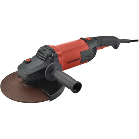 угловая шлифмашина, мощность 2400 Вт, частота вращения диска 6500 об/мин, диаметр диска 230 мм, питание от сети, дополнительная рукоятка