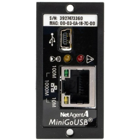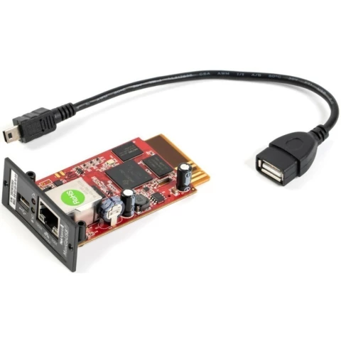SNMP-адаптер для мониторинга и управления ИБП,конфигурация через Telnet, Web-браузер или NMS, возможность подкл. внешних датчиков, поддержка протоколов TCP/IP, UDP, SNMP v.1/v.2с/v.3, Telnet, SNTP, PPP, HTTP, SMTP